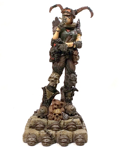 What does $350 buy you in the world of collectible sculptures? A lot if it's TriForce's Gears of War Marcus Fenix Bust, a bust aptly branded as "Epic Scale". Measuring 32 inches tall from the tip of Marcus' extended Lancer assault rifle to the bottom of his detailed COG base, this towering 14 pound bust is more akin to a statue in size and weight. However, it is the eerily life-like sculpt that firmly plants this piece on our list. Using a silicon-like material, TriForce has transformed a digitally rendered character into amazing 3D life, Marcus' stern, determined expression fully realized with realistic wrinkles, pits and scars.