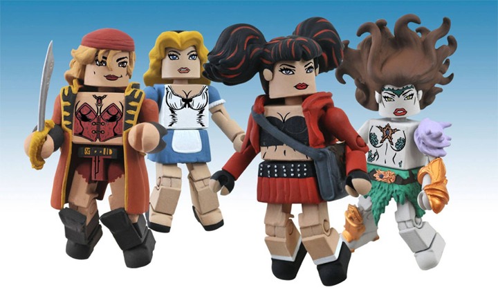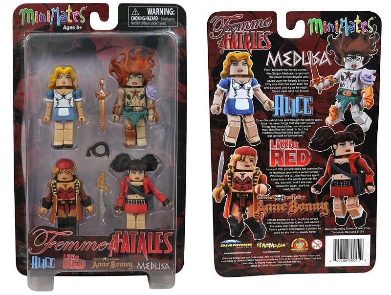 Diamond Select Toys presents a brand new set of 2-inch Femme Fatales Minimates, featuring DST's original creations from the world of fairy tales, mythology and pirate adventure. This Minimates 4-pack (seen here in its packaging for the first time) features Alice, Little Red, Anne Bonny and Medusa. Look for them at your local comics retailer or specialty store in January. The first set is in stores now (see our story HERE).