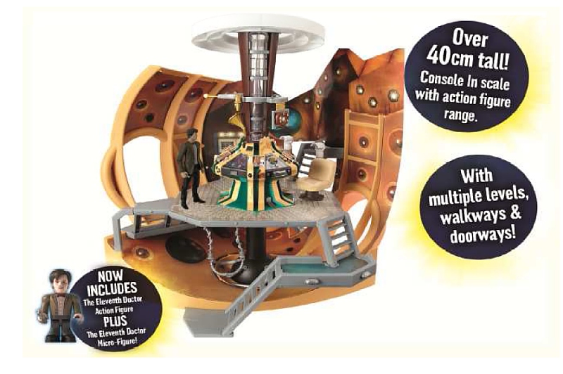 This TARDIS playset is a reproduction of the console room of the Eleventh Doctor's time machine and is over 15 inches tall. In addition, this set includes the Eleventh Doctor as both a micro-figure and 5-inch action figure. This set is available for pre-order now through BigBadToyStore.com priced at $74.99 and scheduled to ship in January.