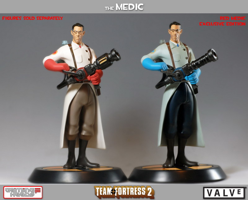 Following the release of The Soldier and Heavy from Valve's Team Fortress 2 comes The Medic. This popular support class in the hit multiplayer shooter will be offered in both red and blue team colors, each 13-inch tall statue limited to 750 units worldwide and priced at $219.99.