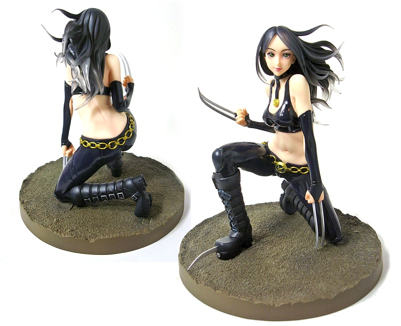 Laura Kinney, codename X-23, was originally created as a character for the X-men: Evolution animated series and her popularity led to her being brought into the actual Marvel comic universe shortly. A clone of Wolverine, the young girl was trained to be an assassin, but was later rehabilitated and invited to fight alongside the X-men and eventually X-force. She shares a mutant ability to heal just like Wolverine, but has only two adamantium claws on each hand, while her third is in each foot and she lacks a fully adamantium skeleton. X-23 is the latest in a line that has grown to include more than a dozen Marvel heroines re-imagined into cute, anime-inspired beauties as part of Kotobukiya’s Marvel Bishoujo figure line, based on designs by popular illustrator Shunya Yamashita.