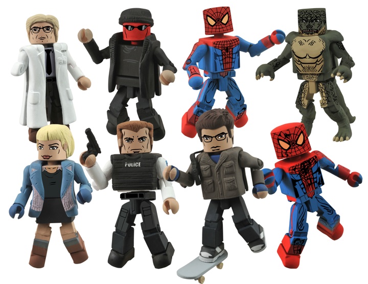 Currently celebrating their 10th anniversary, Minimates are 2-inch mini-figures that feature 14 points of articulation as well as a variety of interchangeable parts and accessories. Hitting in June, the Amazing Spider-Man assortment will be shared between Toys"“R”"Us and specialty stores (the 46th Marvel wave to be sold at specialty), with each outlet getting its own exclusive Minimates.