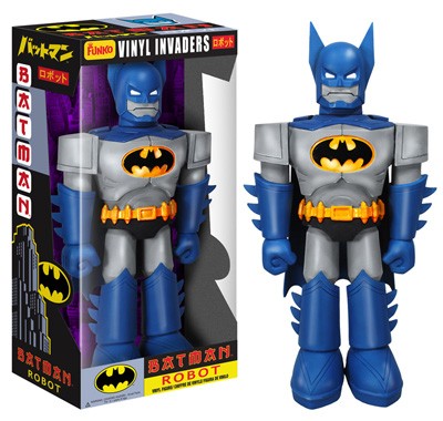 As reported with our Toy Fair coverage (see HERE), Funko had launched a new series this year called Vinyl Invaders. Styled to look like retro Japanese Super Robots, this 11-inch tall series kicked off with KISS' Gene Simmons as the Demon Robot and will continue on April 12th with the release of Batman. This limited edition collectible will retail for a SRP of $39.99 each.