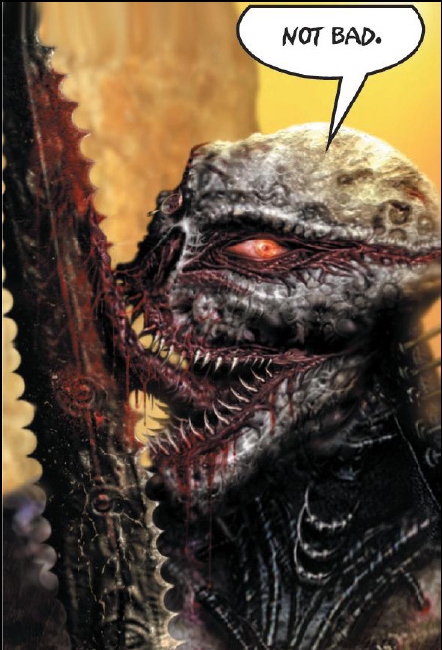 Bringing these fantastic stories to life is the fantastic art of Clint Langley. While Simon Bisley's art practically defined Sláine to a generation, Clint Langley's style takes the Celtic hero into the 21st century with his unique blend of fully painted art and digital manipulation. At times photo realistic, others expressionistic and surreal, Langley's take on Sláine is jaw-dropping in detail and gorgeous with his use of color. In particular, his work for "Golamh" truly stands out, the Quinotaurs oozing in eye-melting Lovecraftian insanity and the Princess Scota popping off the pages with her unique hieroglyphic tattooed sex appeal.