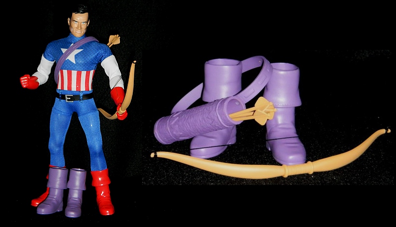 As mentioned earlier, the deluxe costumes are also a part of the "Assemble an Avenger" promotion - made further evident by the promotional sticker on the front of the package. Each deluxe figure set includes different parts to make up a full Hawkeye costume. How it works is simple: Collect all six of the first deluxe costume packs released during the year to build a bonus Hawkeye uniform set. With the first two costume set releases, collectors receive Hawkeye's bow, arrows and quiver with Spider-Man, while Captain America includes Hawkeye's boots.