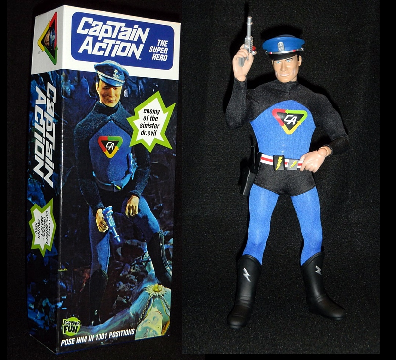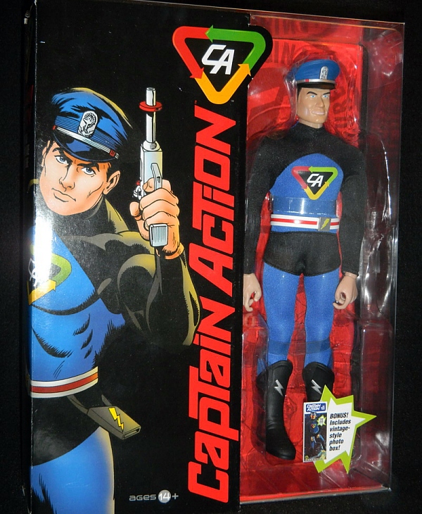 As an added incentive, the deluxe version of the Captain Action figure includes a bonus throw-back rectangular box package which resembles the original toy packaging circa 1965 (pictured top).
