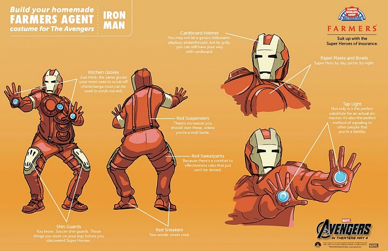 To further the fun, Farmers is taking the ad campaign to Facebook (facebook.com/FarmersInsurance) where wannabe super heroes/ super-agents can get the blueprints on how to create their own do-it-yourself costumes. For those lacking the creative skills, Farmers provides a behind-the-scenes look at the making of the motley outfits in the video below.