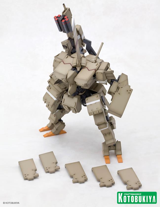 Next up in Kotobukiya’s Frame Arms original series of robot model kits is a powerful tank-like unit, the all new Kagutsuchi. A walking mass of blocky armor plates, the robot embodies strength and durability like none before it.