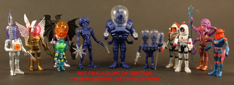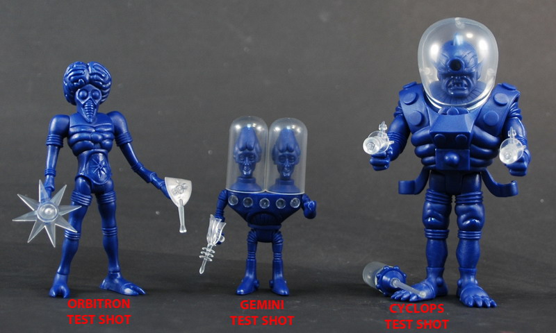 The Four Horsemen share with their fans an early look at their Alpha Phase wave of new Outer Space Men. These unpainted prototype "test shots" show off Orbitron and Gemini and their first Deluxe Outer Space Man, Cyclops.
