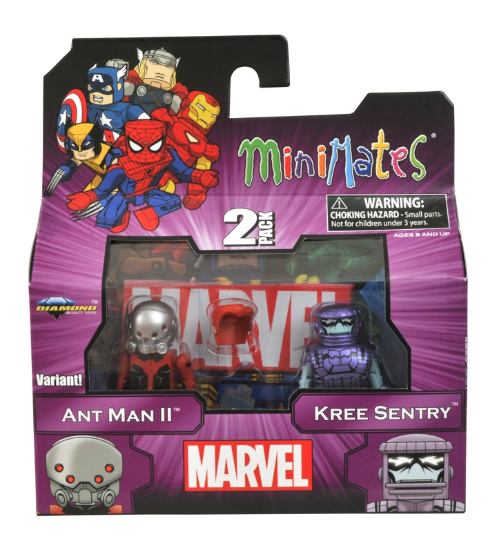 Each Minimate is 2 inches tall, fully poseable and comes packed with accessories and interchangeable parts. Thor comes with an alternate head, Giant-Man comes with all the parts to turn him into Ant-Man, and be on the lookout for the rare variant set featuring Ant-Man II, a.k.a. Scott Lang.