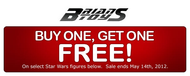 BriansToys.com is running a Buy One, Get One Free offer on select Star Wars figures. Check out their menu of figures HERE, add a figure to your cart and a second one will be added free of charge!