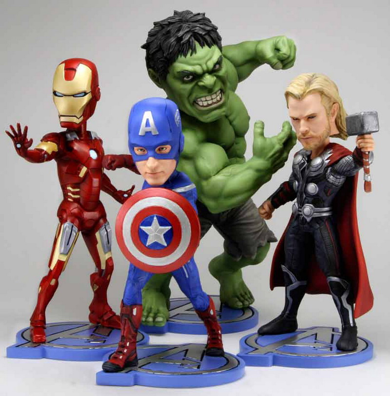 There's just no escaping Avengers movie mania today. NECA joins in the excitement with a reveal of new Avengers HeadKnockers. This assortment of resin bobble heads features Marvel team members Thor, Captain America, Hulk and Iron Man. Each one comes on an "Avengers" logo base, and has movie-accurate costuming and facial features. Look for them mid-May.