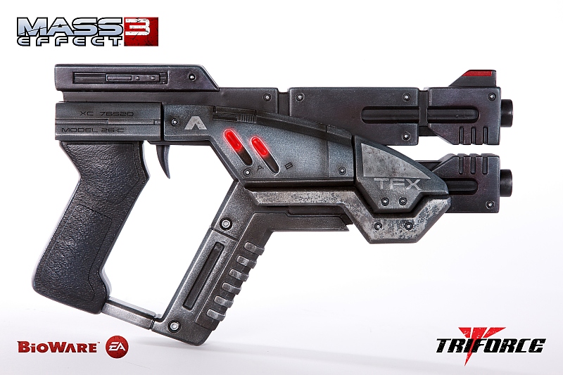 Triforce announces the latest addition to their licensed 1:1 scale Mass Effect 3 prop replica arsenal: the M-3 Predator Pistol. Joining the M-8 Avenger Assault Rifle (see our story HERE), the iconic Predator sidearm will be available for pre-order beginning Tuesday, May 29. The polystone replica, masterfully sculpted and painted by the artisans at TriForce, measures 12" in length, weighs in at 10 pounds, and features working LED effects.