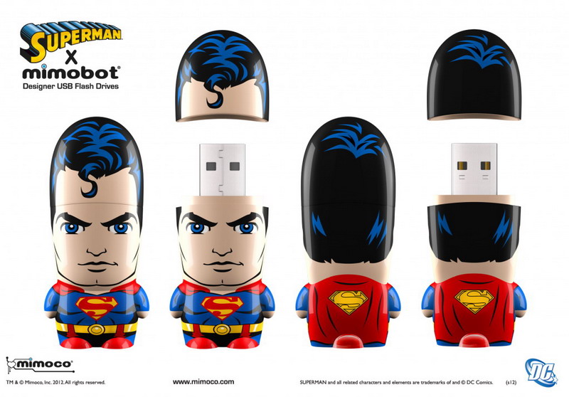 Mimoco, creator of the MIMOBOT line of designer USB flash drives and MIMOMICRO card readers, and Warner Bros. Consumer Products on behalf of DC Entertainment, introduce the Batman "The Dark Knight Rises" Edition, Superman, and The Flash series of MIMOBOT designer USB flash drives. Joining the original Batman (read our review HERE) and Green Lantern (review HERE) waves of MIMOBOT flash drives, these super hero characters are available in up to 64GB capacities and come preloaded with bonus Mimory and mimoDesk suites of screensavers, avatars, and wallpapers.
