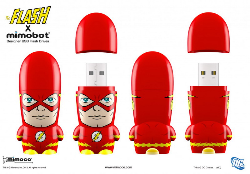 * The Flash X MIMOBOT - Store and transport your data at lightning fast speeds with the ultimate self-referential flash drive of all time, The Flash MIMOBOT designer USB flash drive. Could there be a more perfect character for a character-based flash drive? The answer, of course, is no. With his retro crimson super hero threads and lightning bolt insignia, The Flash MIMOBOT can fetch your data and come back again before you can say, "Hey! Where'd The Flash MIMOBOT go? Oh, wait, there it is!"