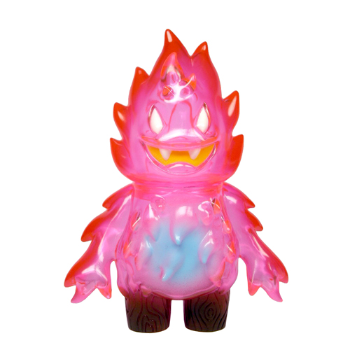 Translucent pink vinyl brings an added charm to Leecifer’s great design of HONOO (aka the flame). Standing 4” tall on his brown kindling legs, the translucence is accentuated with blue, orange, yellow, and white sprays. HONOO burns up your collection as a two-piece Japanese vinyl figure articulated at the neck.