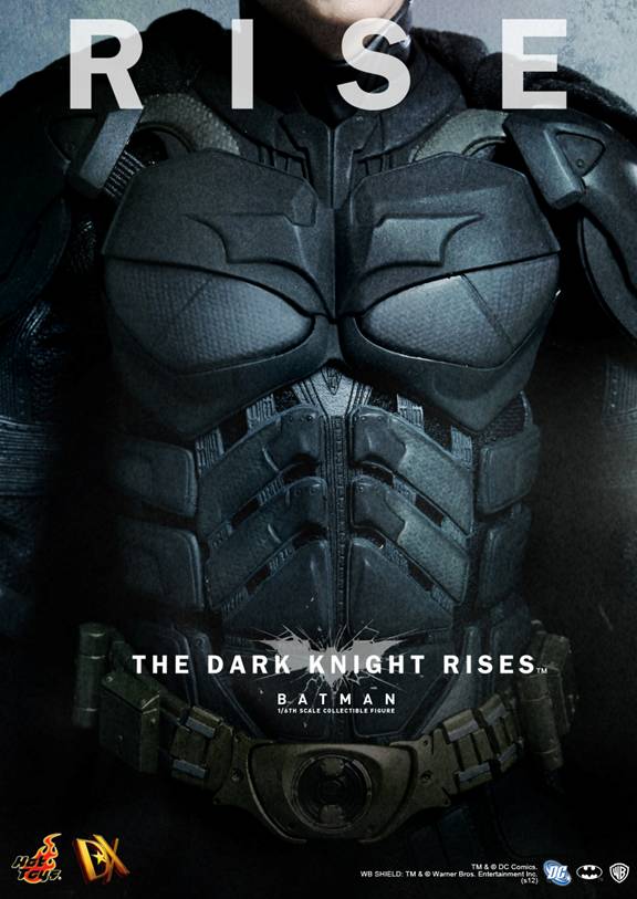 Hot Toys provides two sneak peek photos of their latest 1:6th scale Batman action figure, this time from the upcoming motion picture The Dark Knight Rises. Hot Toys states that the figure will feature the newly developed Batsuit of the DX Batman, featuring a fabric costume with armor as seen in the new film. The Dark Knight Rises opens July 20th. More details on the figure to come...