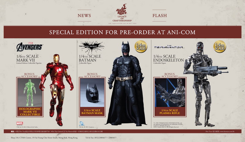 The Ani-Com & Games Hong Kong event will kick off in just one day and Hot Toys will be there enforce. This year, the Hot Toys' booth (F18) will be decorated as the "Hot Toys Theatre" featuring classic superhero thematic scenes and showcasing the specially designed dioramas of The Dark Knight Rises and The Avengers with the latest figures series unveiled.