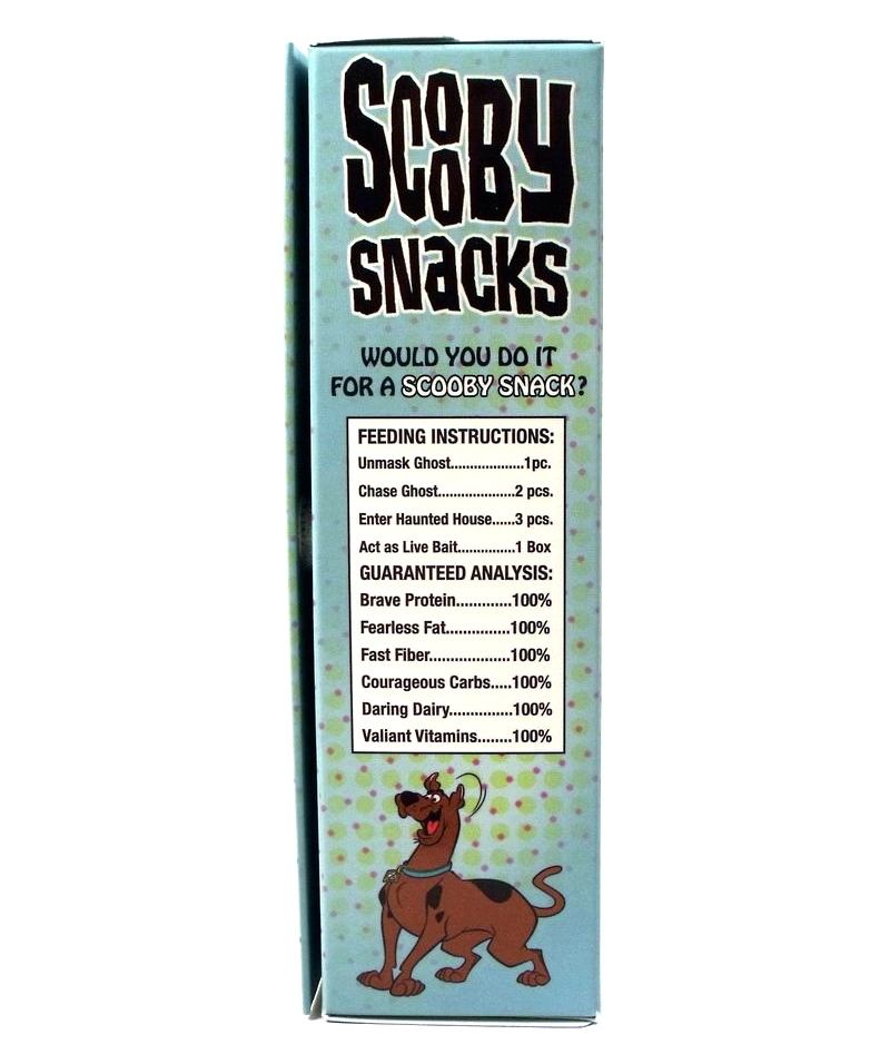 The back of the box lists the humorous ingredients ("100% All Natural Courage Inside") while one side panel states "Feeding Instructions" and "Guaranteed Analysis". Charming little touches that go a long way in making this exclusive special.