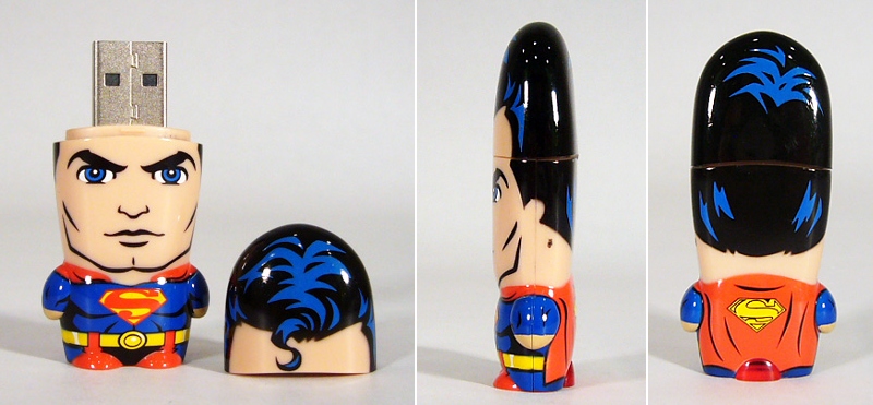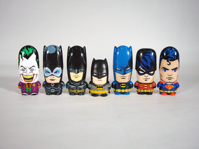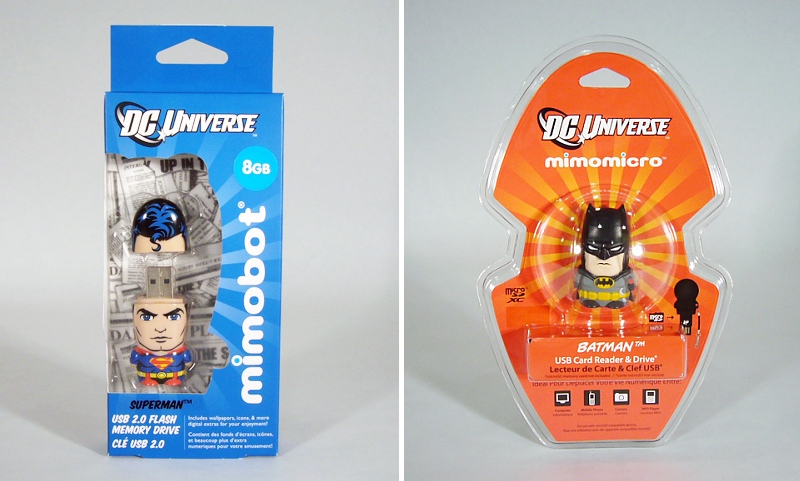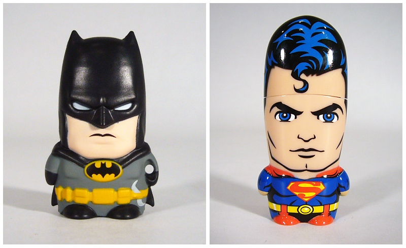 At Figures.com we’re big fans of Mimoco’s Mimobot USB flash drives with its cool collection of characters from DC Comics, Transformers, Star Wars, Hello Kitty, G.I. Joe, video games, and more. The best news for comic book fans is that Mimoco continues to roll out more great DC characters. First came multiple drive sets centered around Batman and Green Lantern (see our reviews HERE and HERE), and now they’ve expanded to a more global “DC Universe.” We’ve already taken a look at the new Flash and Dark Knight Rises Batman (check that out HERE). Today we’ll be looking at the all-new Superman Mimobot and the Batman Mimomicro from the new line of USB card readers!