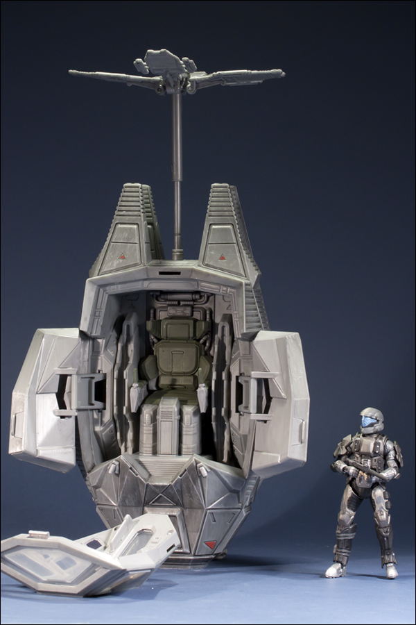 McFarlane Toys has released new photos of a new Halo: Universe item: ODST Drop Pod with Rookie. The ODST Drop Pod is a vehicle used by UNSC’s Orbital Drop Shock Troopers to deploy an individual and his equipment from high orbit to the surface.