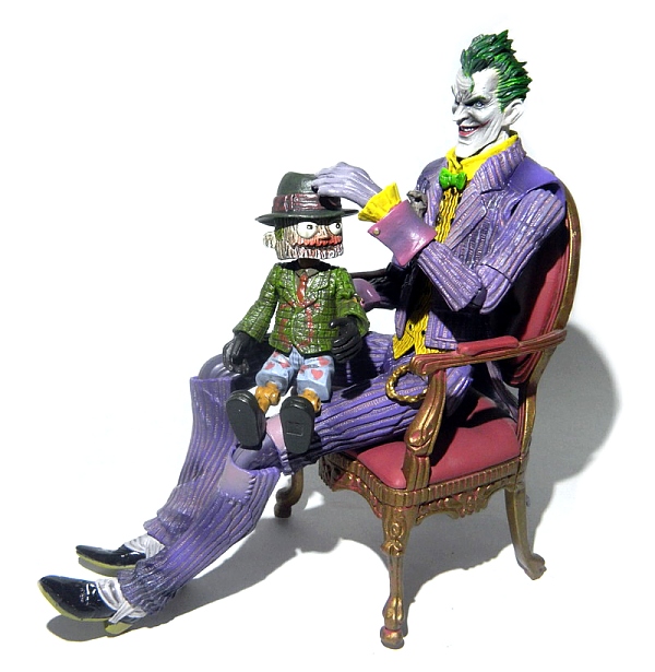 The Harley figure also includes a fully articulated Scarface doll which has a permanently sculpted hand at the back which can easily be attached to the wrist of any of the other Arkham figures in the collection. Harley also includes an additional gripping hand for alternate posing options and ornate short staff.