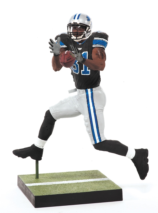 McFarlane reveals that their newest Collectors Club exclusive will be Detroit Lions wide receiver superstar Calvin Johnson Jr. The figure marks the SportsPicks debut for Johnson, better known as “Megatron.” Selected with the second overall pick in the 2007 draft, Johnson has been dominating opposing NFL defenses ever since. In 2012, Johnson signed one of the largest sports contracts ever, receiving $132 million over 8-years. Johnson added yet another accomplishment under his belt being featured on the cover of Madden 2013, releasing August 2012. Johnson is showcased in his Lion’s black jersey making yet another amazing catch!
