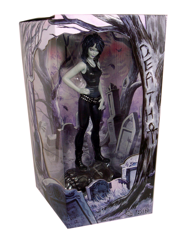 Mattel’s Death figure is more of a statue than an action figure, being dubbed “stactions” by fans, standing at 8 inches tall rather than being in scale with their established DC Universe Classics line. Why it was decided to introduce a new product line and scale is unclear but I’m sure I’m not the only fan that's disappointed Death towers over all of my other figures. It was said in a Q&A that they are trying something new out and if it does well we can expect to see an entire in-scale line of the Endless, but it remains to be seen if the Death figure sales met the expectations needed to produce the line.