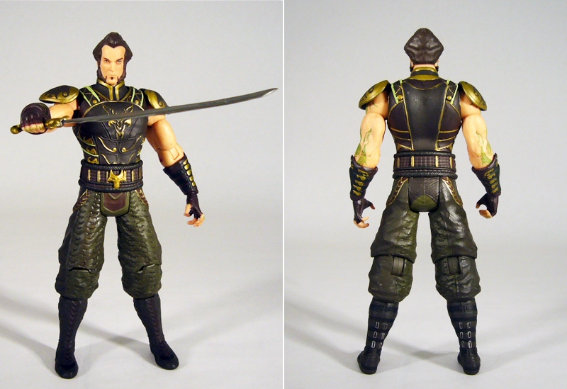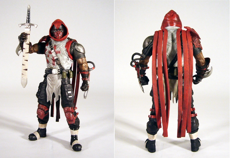 Ra’s al Ghul too has very impressive armor and clothing with a variety of textures and embellishments. The standouts in this series for me were Penguin and Azrael. The creepy crime lord has a spot on head sculpt that really shows off his broken bottle “monocle” in the grossest way possible, and every detail on his outfit and hands work well. Then there’s the “Mysterious Watcher.” A member of the Order of Purity, Azrael wears the infamous Suit of Sorrows, and the figure is absolutely covered in minute sculpted details. There’s just so much to enjoy here from the multiple layers of clothing to the strapped knee-pads and boots, grenade-laden studded belt, tattered and torn tabard, armored shoulders, weapon gauntlets, face mask and cowl, and so much more. Every time I look at him I notice something I didn’t see before.