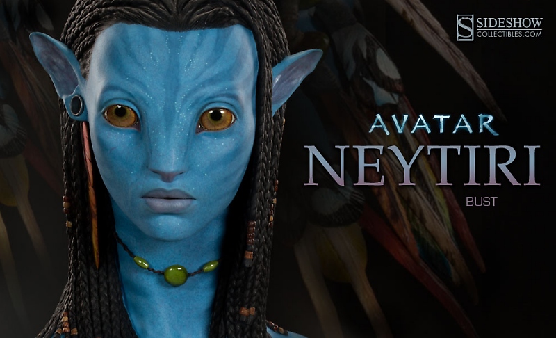 Sideshow has posted teaser images of next Thursday's pre-orders, both items based on James Cameron's hit motion picture AVATAR. First is a startling realistic life-size bust of Neytiri, sure to please fans of the sexy Na'vi. Next up is a statue of Jake Sully in his Na'vi Avatar form, kitted up and ready to take on the RDA. expect a full reveal of both pieces early next week.