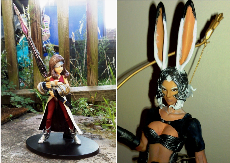 I really enjoyed making both FFIX Beatrix and FFXII Fran as they were little bit of a challenge. Just the amount of detail on Fran's "helmet" took me about three days to make but I think it turned out pretty good. Making Beatrix's curly hair was a bit tricky as I had to cut very thin parts of plastic and shape them up and glue them before sculpting the detail. I have to admit that I did cut myself pretty badly at least three times making her...