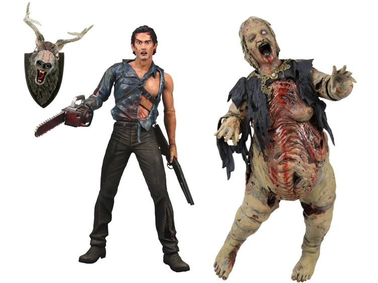 Following their first Evil Dead 2 action figure assortment at the beginning of this year (read our review HERE), NECA has recently released Series 2. This eagerily awaaited wave packs the bloated zombie Henrietta with alternate extended head and the difinitive Hero Ash, the undead slayer featuring his most iconic look with chainsaw hand and sawed-off shotgun (and a possessed deer head to boot!). Check out the cool video review below of these two figures by Figures.com reporter Jorge Pelaez (aka ToyAddict26).