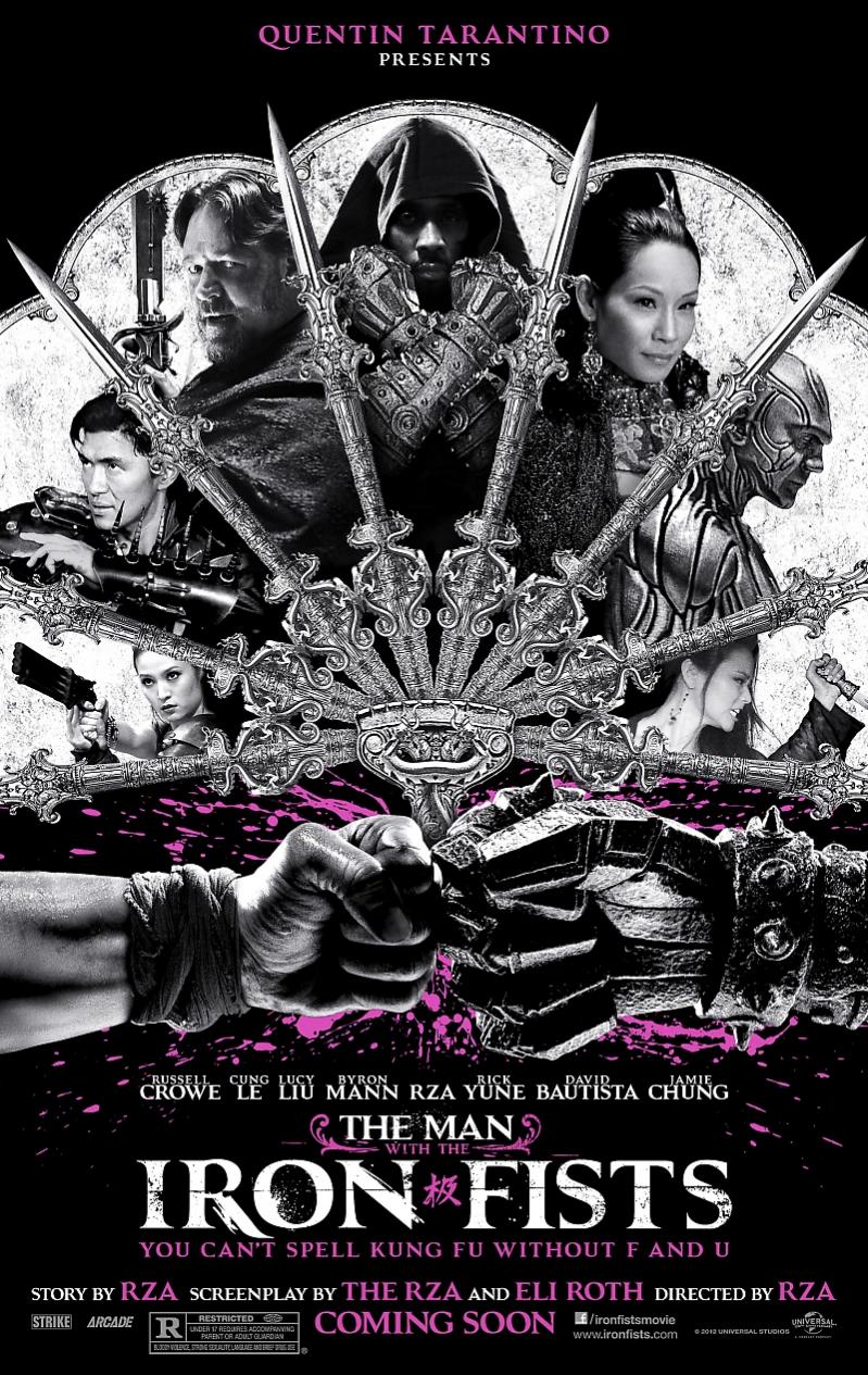 Quentin Tarantino presents THE MAN WITH THE IRON FISTS, a new martial arts film directed by RZA and written by RZA and Eli Roth. Pictured above is the one sheet poster featuring some pretty cool art work and catchy tagline "You Can't Spell Kung Fu Without F and U".