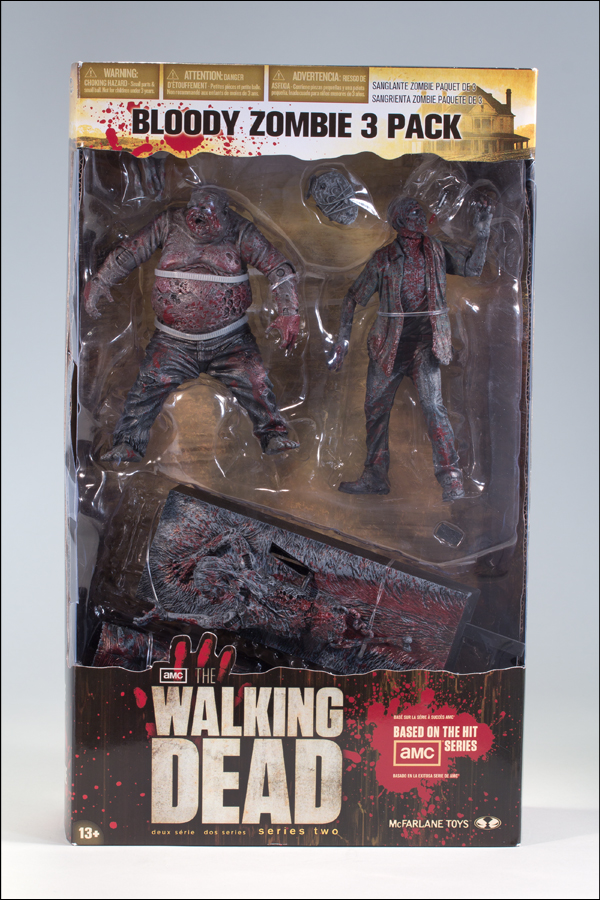 Just like the full-color figure from McFarlane's The Walking Dead TV Series 2, this bloody black & white zombie 3-pack features all of the detail, accessories, and play action of the standard full-color figures. Pack includes Bicycle Girl with damaged cell phone & jeans; Well Zombie with attached rope and canned ham; and RV Zombie with removable screwdriver.