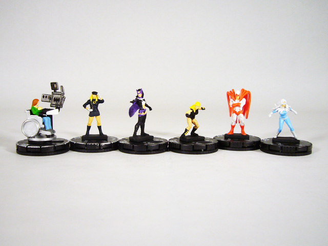 Building a Birds of Prey HeroClix team is a snap with this Fast Forces set. Huntress, Black Canary, Hawk, and Dove are each 100 points, while Oracle and Lady Blackhawk are both 50. Need a hard-hitting 300 point team? Grab Hawk, Dove, and Black Canary. Or switch out Canary for Huntress to boost your range. Oracle and Lady Blackhawk present you with lots of options and support, and they go great with the others (especially Oracle with Huntress and Canary). In larger point games you can even play the entire team; they add up nicely to a round 500 points. You’ve got plenty of options, and none of them are bad! Of course, you can also team up these members with other characters with the Birds of Prey keyword, from Streets of Gotham all the way back to Hypertime.