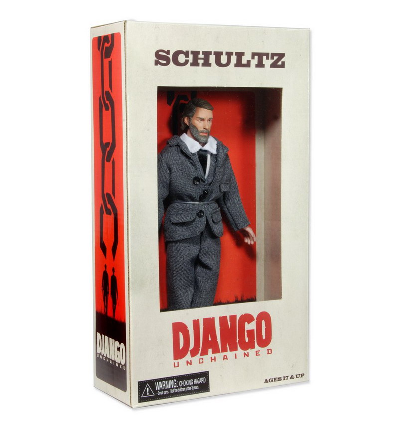 True to the vibe of the film and to Tarantino’s aesthetic, NECA's new Django Unchained action figures are classics in the truest sense — cloth clothing, window box packages, larger scale — all while still keeping movie-accurate detail. Characters included are Candie, Stephen, Django, Broomhilda, Butch, and Schultz. SRP of $29.99 and available for order now at many fine retailers such as BigBadToyStore.com where they are priced at $24.99 each.