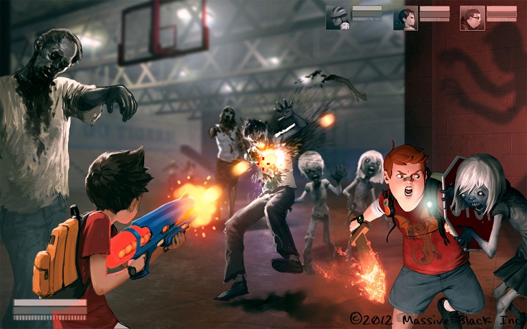 It’s here readers enter the truly awe-inspiring book that is Massive Black Volume 2. Here readers find four distinct sections: Games, Movies, Advertising and MB Entertainment each with their own sub-sections based on properties and titles. The game section includes the studio’s work on everything from Starhawk, Infamous and Infamous 2, an Untitled Sega game (with very impressive graphics), Red Faction: Armageddon while the film section includes work on such titles as Transformers 2 and Transformers 3, G.I. Joe, Thor and Battleship. Advertising clients include Coca Cola, British Gas, Coco Pops, and Dancing with the Stars to name a few while MB Entertainment properties include those pictured here: Zombie Playground, Transient, Proxy and Mothhead.