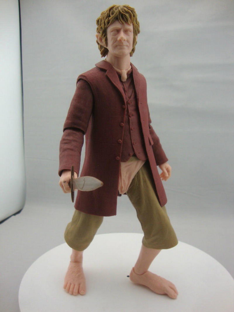 NECA provides a look at the prototype for their quarter scale Bilbo Baggins (pictured above). Photographed directly from the factory, the unpainted Test Shot shows off the figure's articulation and sculpted detail.