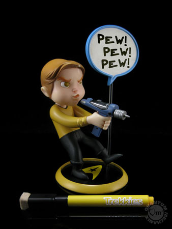 Captain Kirk, First Officer Spock and Communications Officer Uhura reporting for duty. Quantum Mechanix (QMx) unveils the first three characters in their new line of Trekkies Q-Pop Figures.