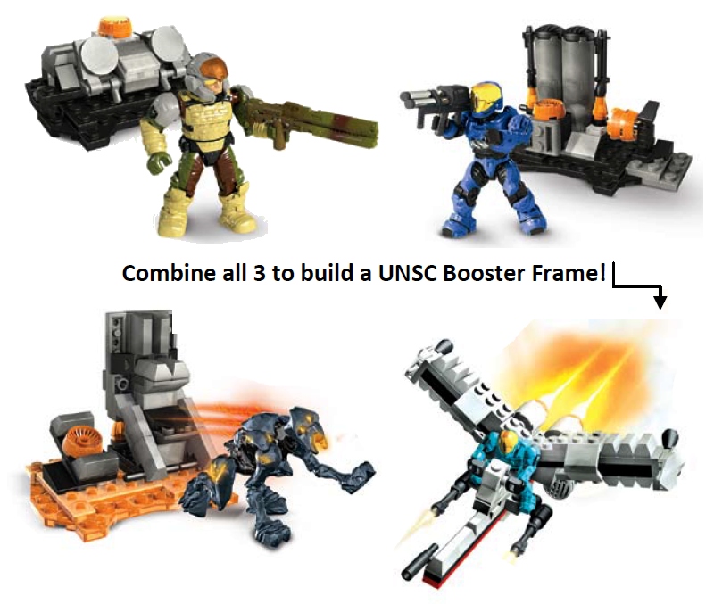UNSC C&C Console (97131U): A UNSC Marine heads to the command and control console to alert troops of incoming Covenant forces. Prepare the UNSC for inbound hostile enemies with the Mega Bloks UNSC C&C Console. Combine the UNSC C&C Console with the UNSC Hangar Deck and the Forerunner Terminal to build a UNSC Booster Frame! (approx. 60 pcs) Set includes all-new Halo 4 Marine figure.