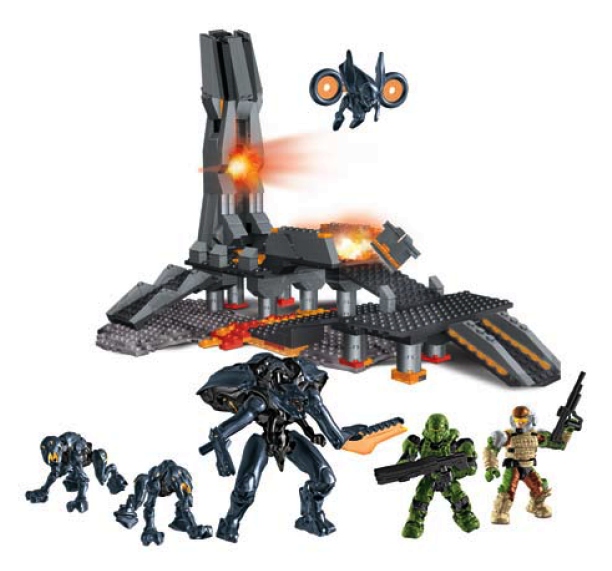 New buildable Pelican with 3 Majestic Team micro action figures (Spartan Operator, Pathfinder & Scout). Also includes first ever light up Knight Battlewagon figure! In-game sounds & lights! Approximately 1,160 pieces.