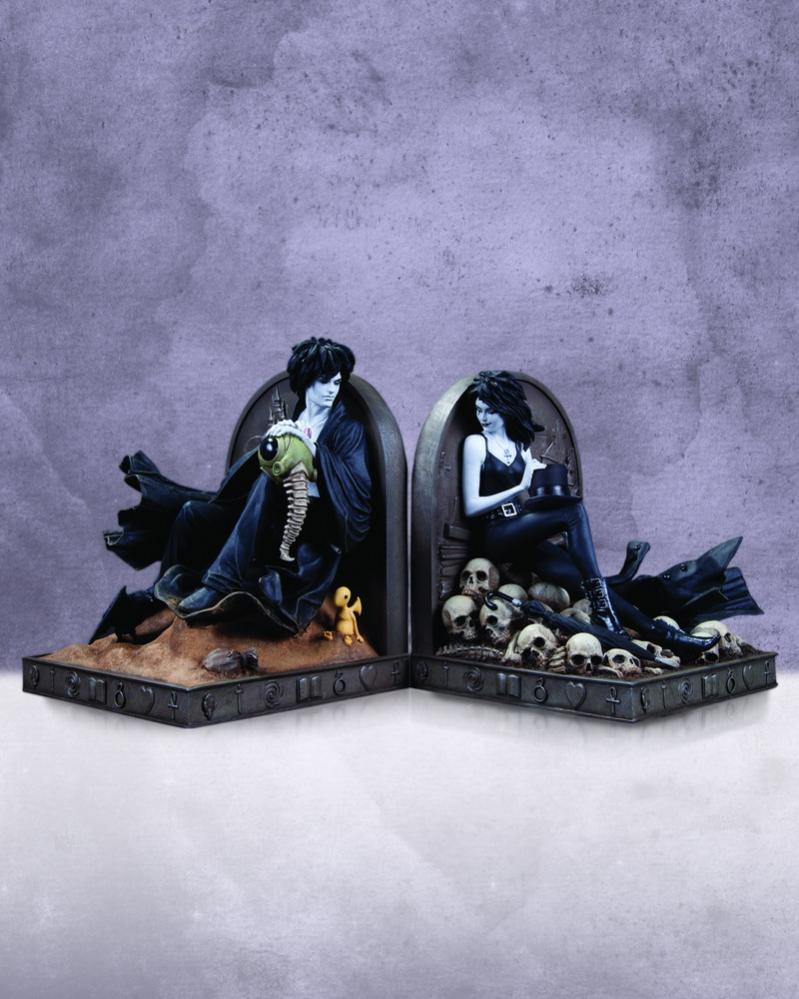 Bookend your collection with New York Times best-selling writer Neil Gaiman’s Sandman and Death of the Endless! Based on Eisner Award-winning artist Mark Buckingham’s drawings of these unforgettable characters, this spectacular second edition of bookends, featuring a new paint deco, will put the finishing touch on your Sandman library and Absolute editions.