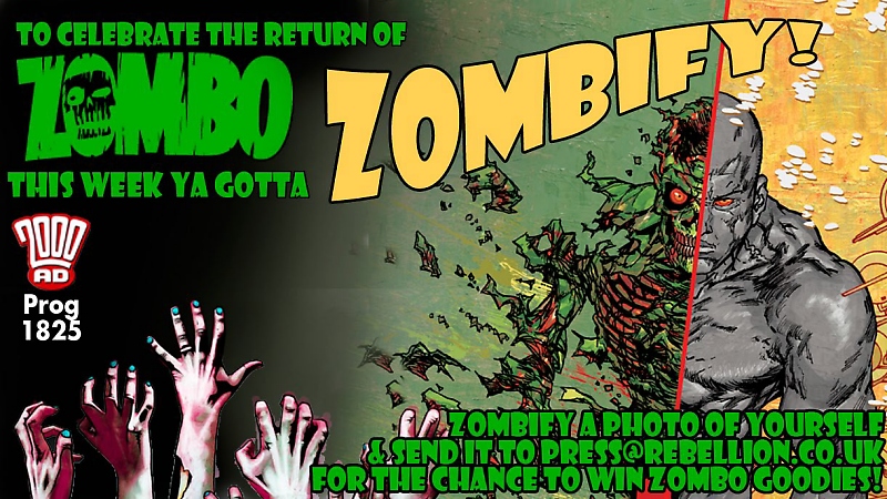 The gentleman zombie, ZOMBO, returns to 2000 AD with a new series from the insane imaginations of Al Ewing and Henry Flint. To celebrate the start of PLANET ZOMBO this Wednesday in Prog 1825, 2000 AD is encouraging readers to zombify themselves for the chance to win Zombo goodies. All you have to do is either take a photo of yourself looking like a zombie or zombify an existing photo, then send it to press@rebellion.co.uk - the best will feature on the 2000 AD website and win their owners some zarjaz prizes!