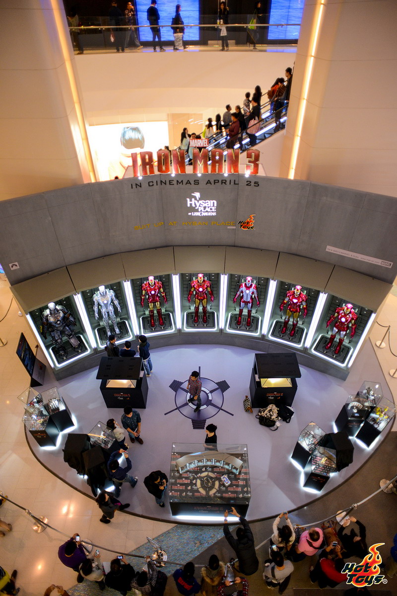 Hot Toys' Iron Man 3 event – SUIT UP AT HYSAN PLACE POWERED BY HOT TOYS - is now open to the public. The event is being held in Causeway Bay, Hong Kong on April 5 - May 12. The event features a Hall of Armor showcasing life-size 1:1 scale Iron Man 3 statues of the Mark I-VII, the latest 1:6th scale Iron Man 3 figures from Hot Toys, the first ever holographic display featuring Hot Toys' Marvel's Mark VII figure, as well as a custom Hot Toys Iron Man figure exhibit featuring the work from artists around the world.