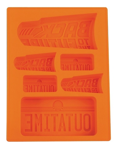 Planning on making a scientific breakthrough? Breaking the time barrier? Asking your mom to the school dance? Then why not celebrate with a cool drink using your own Back to the Future ice cubes! This silicone rubber tray features various sized molds of the BTTF logo and the OUTATIME license plate, and can be used to make ice, gelatin or chocolate! SRP: $14.99 (SEP121670)