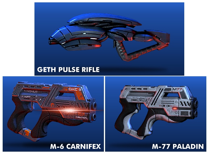 Following the sold-out release of the M-8 Avenger Assault Rifle and M-3 Predator Pistol, TriForce teases their second wave of 1:1 scale Mass Effect 3 Weapon Replicas. Looks like to me that we'll be seeing a Geth Pulse Rifle and a M-6 Carnifex and/or a M-77 Paladin Pistol.