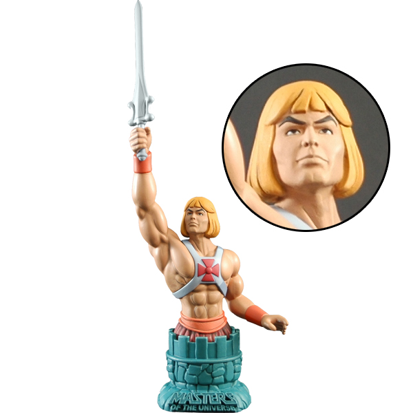 Keep your papers safe from Eternian winds with the Icon Heroes Masters of the Universe He-Man Mini Bust Paperweight. Based on the 1980's Filmation television series, He-Man wields his power sword atop a Castle Grayskull tower base defying evil. Designed and sculpted by Joe Amaro and the Four Horsemen, this complete piece comes with sheath and Master of the Universe logo. Cast in high quality polystone, the He-Man Mini Bust Paperweight stands approximately 12 inches tall from the bottom of the base to the tip of the Power Sword. This makes a great addition to any desktop or Masters of the Universe collection. Available September 2013. SRP $60.