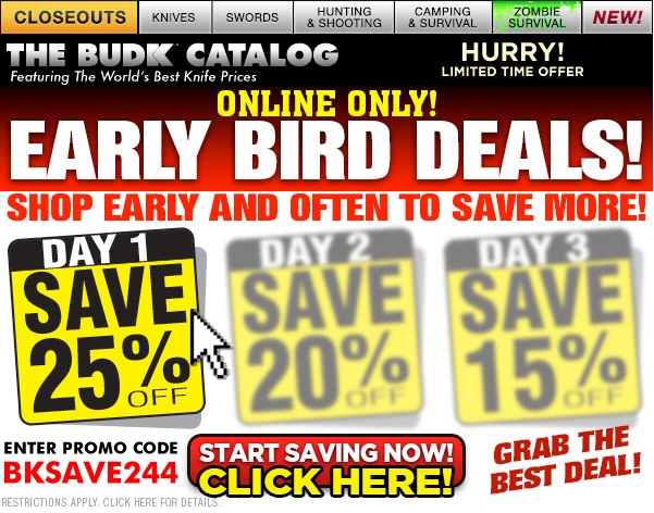 You've heard those sayings from the old folks your whole life, "The early bird gets the worm." Well, in this case it's definitely true. Because if you shop with BudK.com today (5-6) you'll receive 25% off your entire purchase. If you wait until tomorrow (5-7) you'll get 20% off and BudK will give you one more day to shop with 15% off on Wednesday (5-8). There's never been a better time to be the first in line, so don't wait to order. *Exclusions apply*