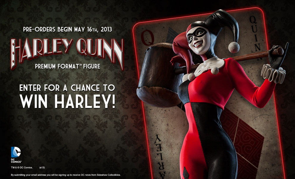 Sideshow updates DC fans by announcing that their new Harley Quinn Premium Format Figure will be available for pre-order on May 16th. Expect a full reveal early next week. Until then, be sure and hit the pic above to enter Sideshow's giveaway for a chance to win one!