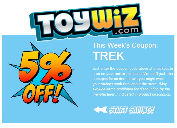 ToyWiz.com has thousands of in-stock items. Use the coupon code TREK and receive 5% off your purchase! Shop from an incredible selection of the newest and most popular action figures, toys, and collectibles including: